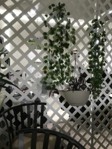 Wir fuhren also zum nächsten Baumarkt um Material einzukaufen. Vielleicht wären ein Plan und ein Aufmaß eine gute Idee gewesen. Aber wir hatten das erstens nicht, weil wir noch keine richtige Idee hatten und zweitens, weil wir keinen Zollstock hatten (oder heißt das hier Inch-stock, weil ja alles in Inch und Feet gemessen wird?). Aber egal, dann eben Pi mal Daumen mal Fensterkreuz. In der Gartenbauabteilung wurden wir schließlich inspiriert und fündig.