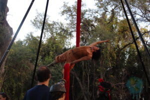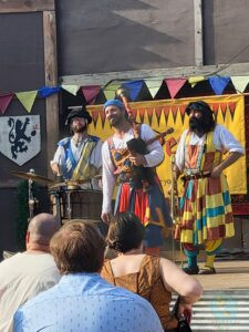 Das Schöne – im Vergleich zu deutschen Mittelaltermärkten – ist, dass niemand schief angeguckt wird wenn das Outfit nicht „passt“ (Ok… wir konnten und nicht verkneifen das ein oder andere als fragwürdig zu belächeln) Außerdem ist die Einbeziehung des Publikums deutlich mehr, denn Gaukler oder Musikanten spielen an allen Ecken und zeigen Gästen auch gern ihre Instrumente oder lassen Gäste ihre Kunst, Akrobatik oder ihr Handwerk ausprobieren. (jaaaa, Schwert-Übungen mit Fechtmasken sind schon etwas schräg, aber es geht ja um Spaß mit Sicherheit fürs Publikum).