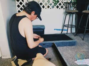 (Unsere alte Couch wurde ganz nebenbei zu einem Sessel für Celinas Zimmer umgebaut. So mussten wir sie nicht komplett entsorgen und sie tut noch weiter ihren Dienst)