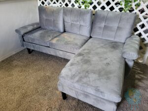 Und wo wir schon mal so schön am Geld ausgeben sind, könnten wir doch im Wohnzimmer auch eine neue Couch gebrauchen. Eine mit mehr Platz für uns zwei Weiblein… zum breit machen… und Füße hochlegen. Nach einer Suche in einem wohlbekannten Online-Marktplatz war auch bald ein angemessenes Stück gefunden und bestellt. Nun ein paar Tage warten und dann… kam natürlich eine falsche Couch an. Gut, sie kam eher als erwartet, aber dass das Modell nicht dem entsprach was bestellt war konnte man erst richtig feststellen als es final zusammengebaut war. Hm… und nun? Den Anbieter kontaktieren und auf Austausch plädieren? Oder was jetzt? Nach einigen Rück- und Räumversuchen beschlossen wir dann doch das gute Stück zu behalten (weil das Material so schön weich ist…). Außerdem wirkt das Wohnzimmer jetzt deutlich grösser und wir Mädels haben endlich viel mehr Platz zum Lümmeln.