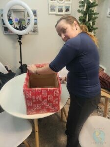 Months before the event, we started thinking about how to set up our stand and made various decorative materials. Our apartment was practically transformed into a photo studio with an integrated craft workshop, which Santa Claus and his helpers would certainly have enjoyed.